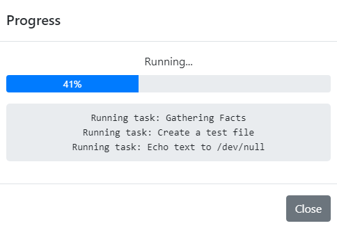 This script handles button clicks, initiates the playbook task, and updates the progress bar based on task status.
