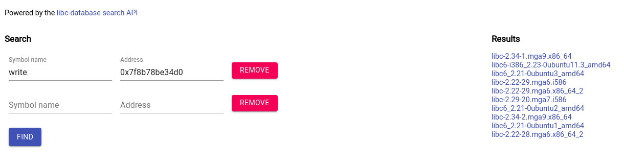 Sometimes you will calculate the offsets locally, but they won’t work because a different version of the libc library is being used on the target system. You can use the site here and enter leaked addresses and function names and it will narrow down versions for you.