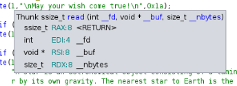 Next, we need to identify the memory address of some common function from the application. In order to do this, we need to control the write function within the application. Let’s look in ghidra at the parameters and registers used by the function
